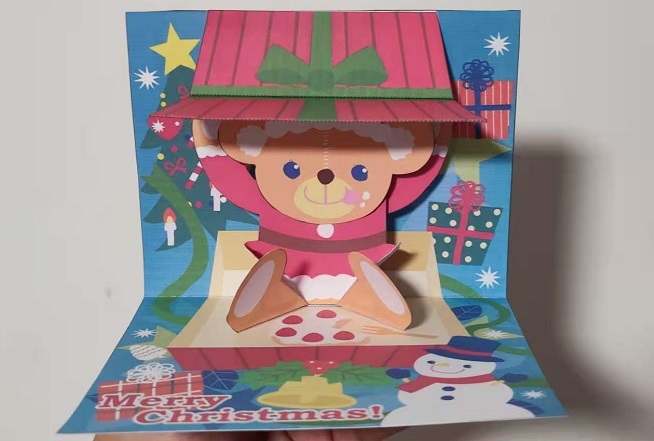 泰迪熊礼物 立体卡 Yuki Ohsawa / Hiroshi Sakurai 佳能官网 圣诞题材立体卡,来自佳能官网。打开卡片后,萌萌的泰迪熊从圣诞礼盒中弹出,非常可爱。这张卡片打开礼盒的方式是跨页拉杆,是一个拉翻组合结构,非常适合爱好者学习。 跳转下载