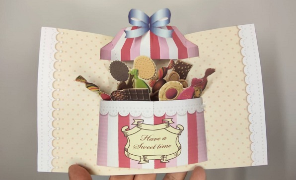 糖果礼盒 立体卡 HIROKO 佳能官网 来自佳能官网,是一张较为复杂的组合结构立体卡,其题材为糖果礼盒,适合多种场景,可以作为情人节贺卡或生日贺卡。卡片打开后弹糖果弹出,非常炫酷。其结构形式也和适合初学者学习立体结构之间组合应用。 跳转下载 进入教程