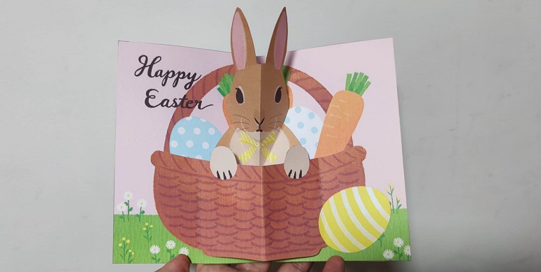 竹篮中的小兔子 立体卡 Hiromi Takeda / shino 佳能官网 来自佳能官网,是一张复活节主题的立体卡片。主体为平行折结构,小兔子是V形折结构。同样是经典的组合结构,打开后小兔子会从竹篮中探出头。 跳转下载 进入教程